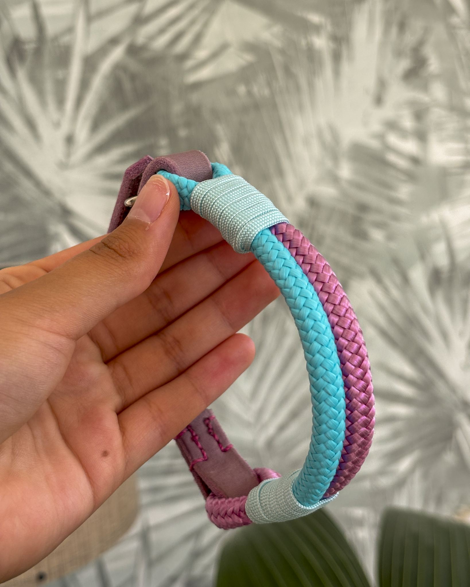 Hundehalsband aus Tau – Rosa/Hellblau